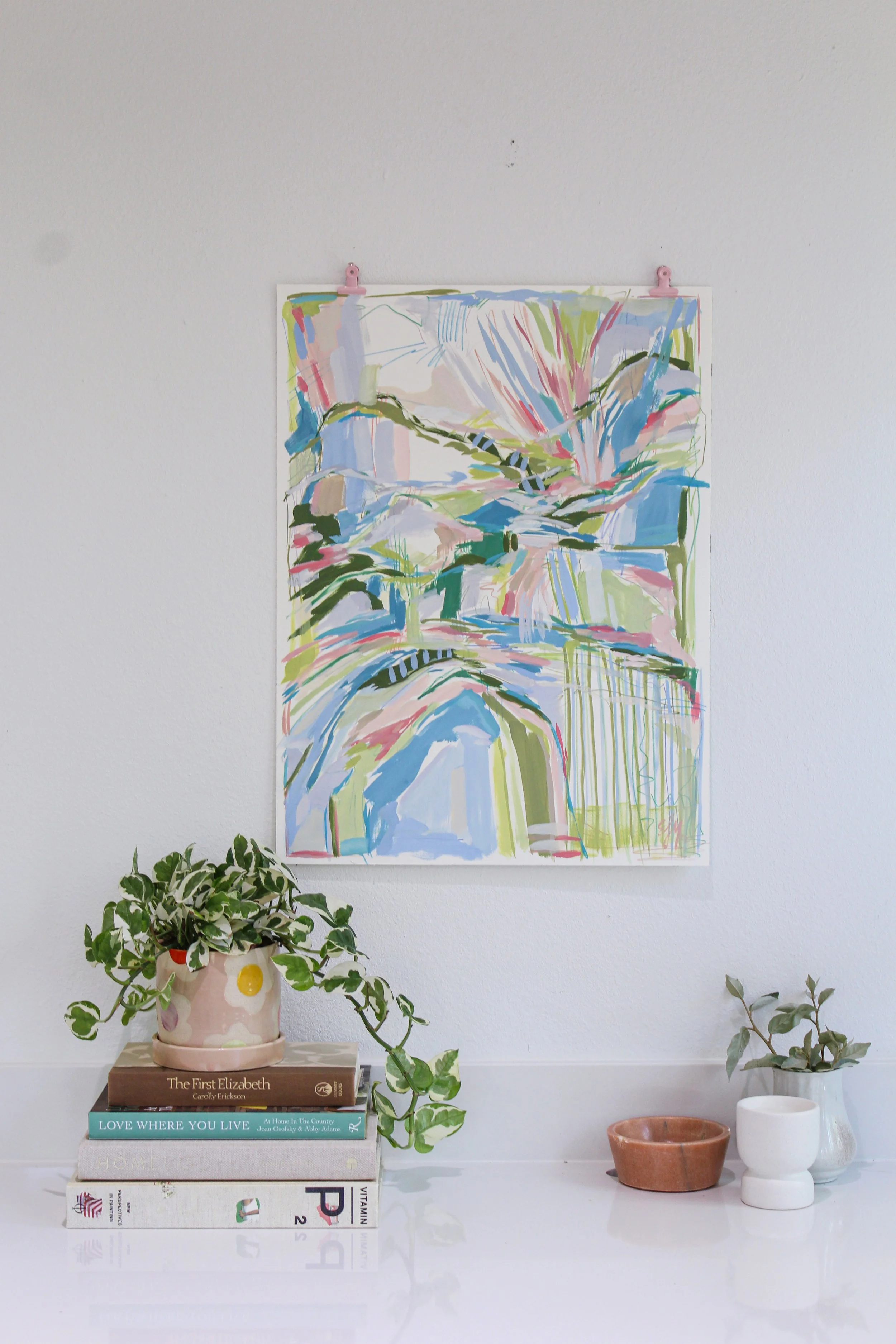 This is an unframed printed reproduction of the original 18x24"” oil painting on paper, “Counting Constellations” from the Abstract Collection. All images are printed full bleed and will be signed on the back, making them ideal for framing! Please note that some print sizes will have slight cropping from the original image.