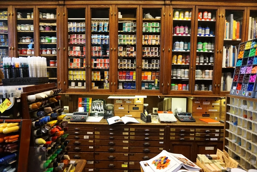 I’ve had the opportunity to visit a few really great art stores all across the world. In these art stores, you’ll get lost in the depths of the aisles of handmade paints, palettes and every other obscure art-making material known to man. My favorite art shop that I’ve visited is Sennelier in Paris. Artists like Monet and Van Gogh have walked through its Seine-facing doors. Austin and I ducked into the store on a rainy day when we were there last year, and my mind still wanders through the memory of the tall shelves full of potential.