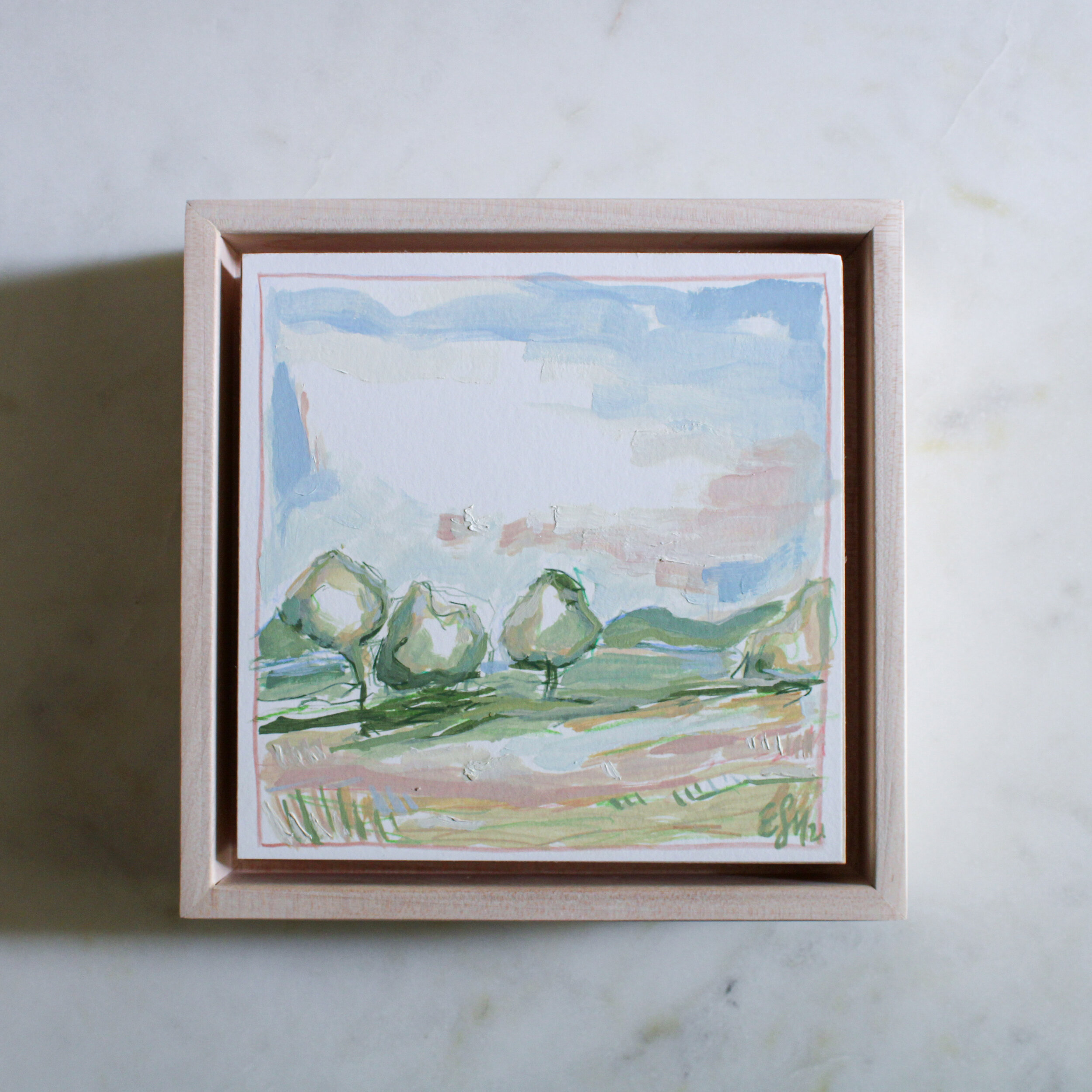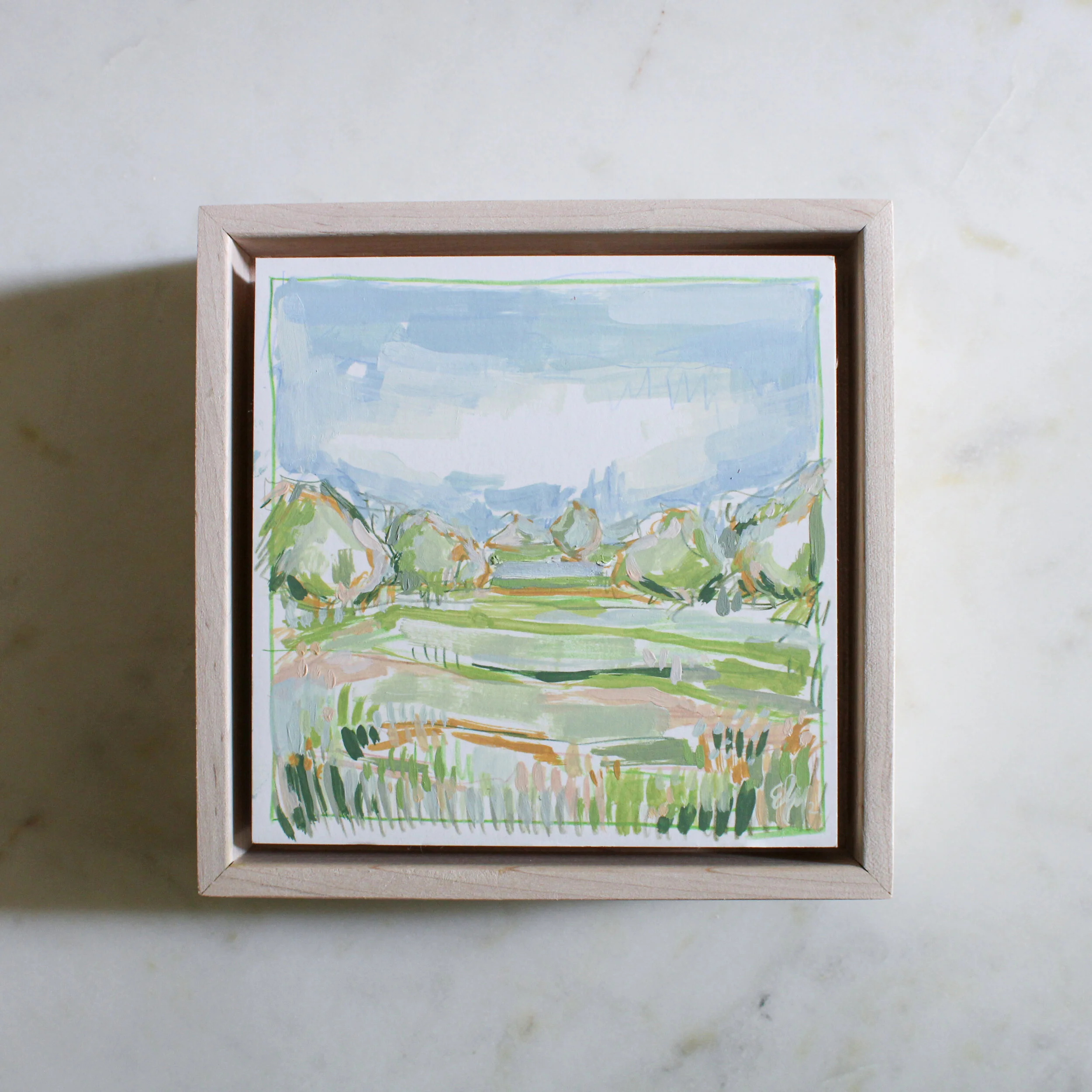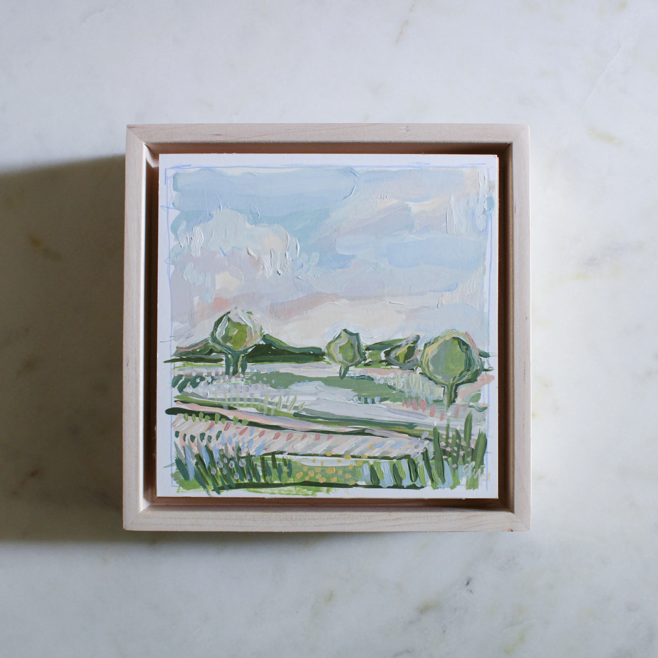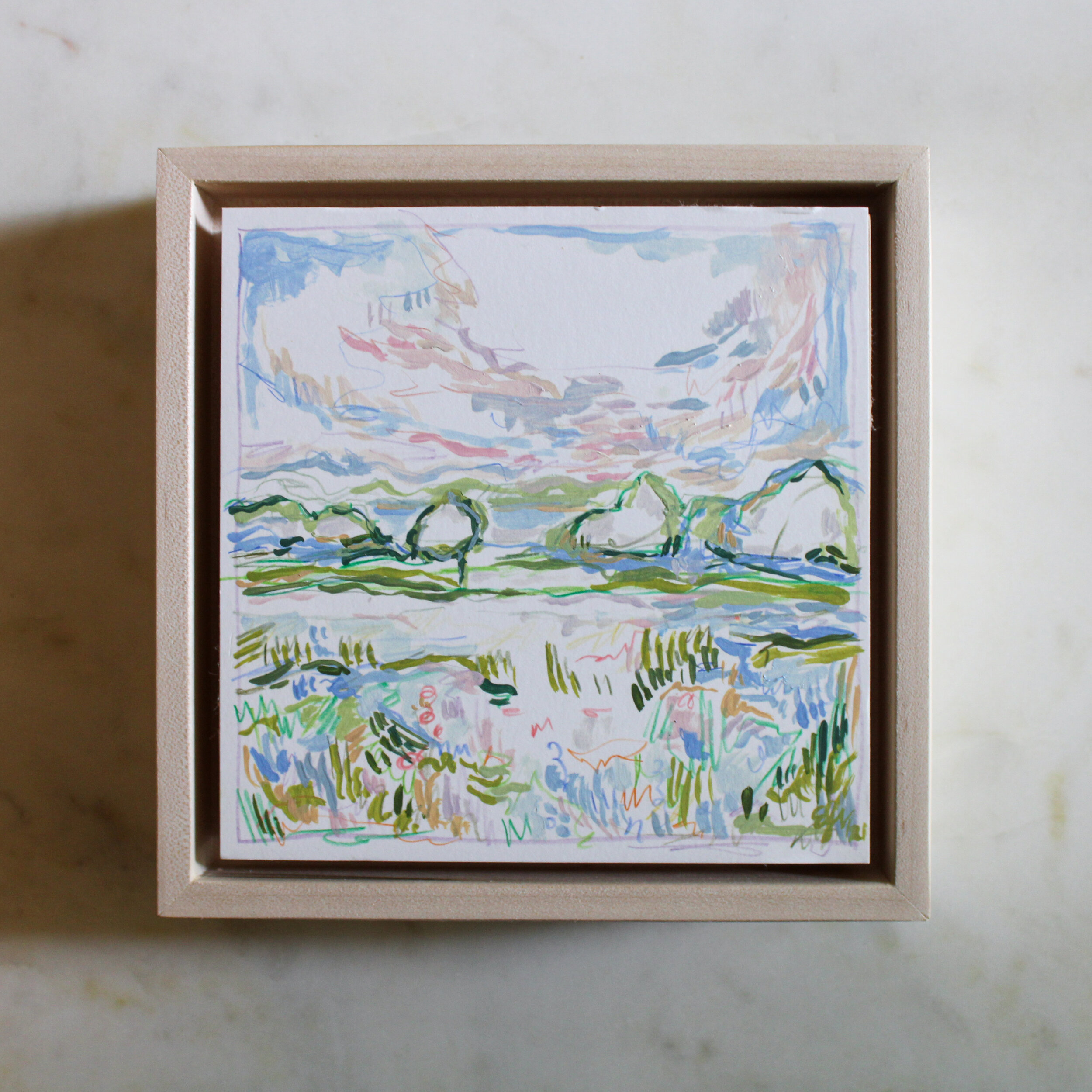 Sky Meets The Land, 6x6" | oil and colored pencil on paper, framed (Copy)