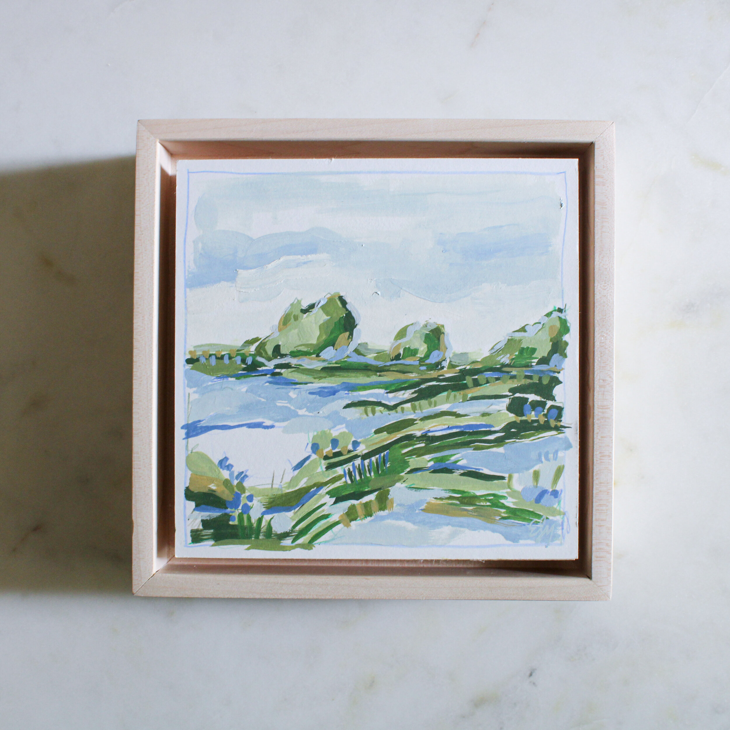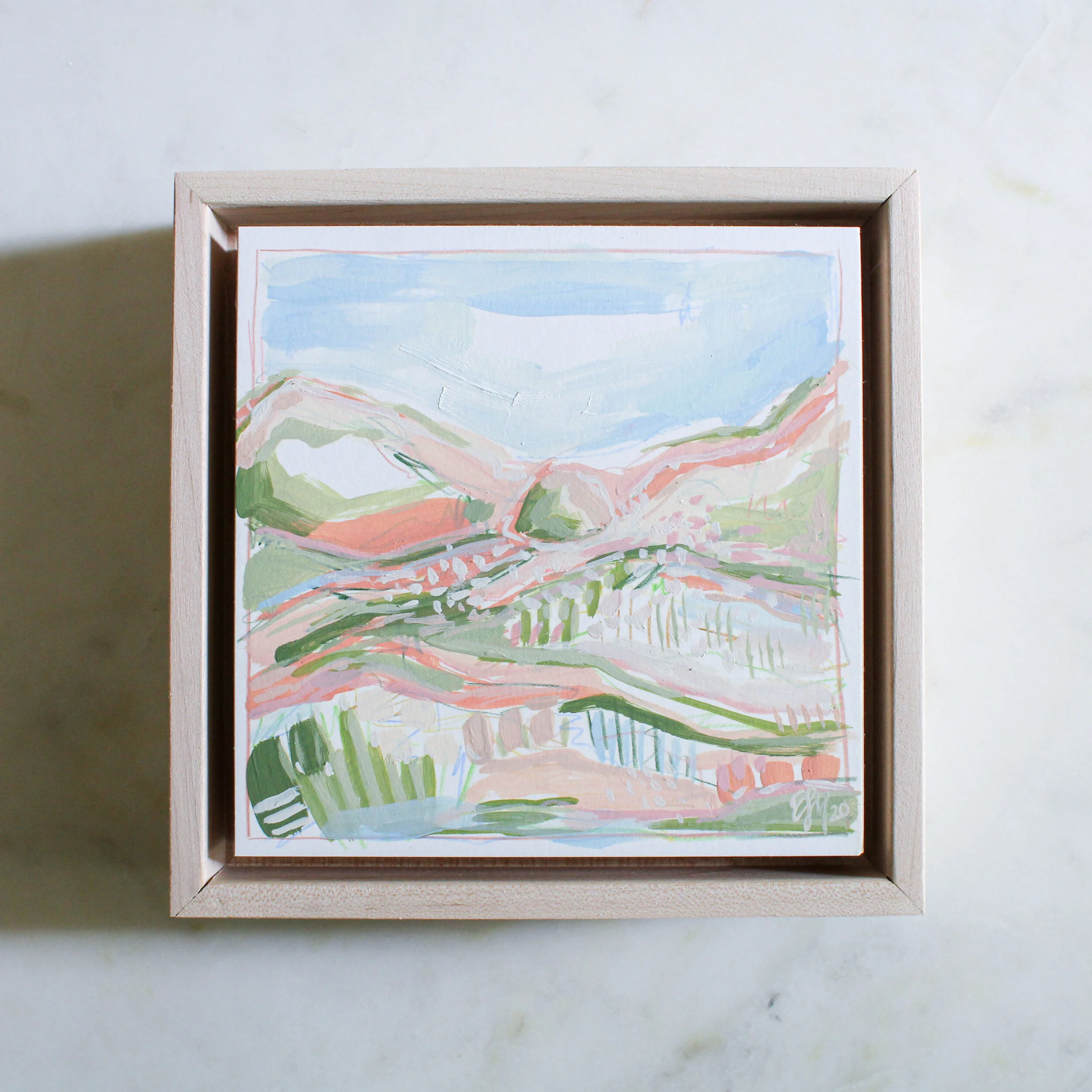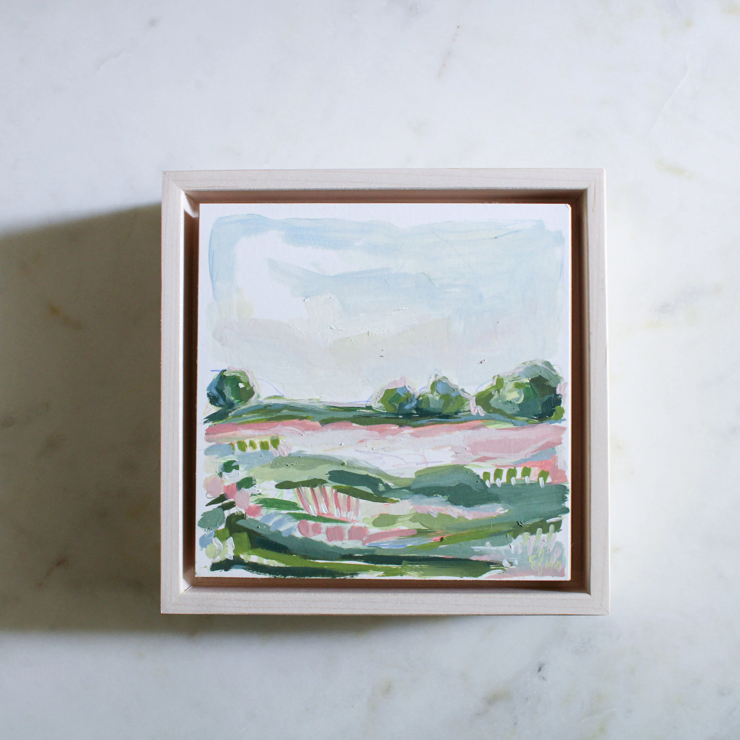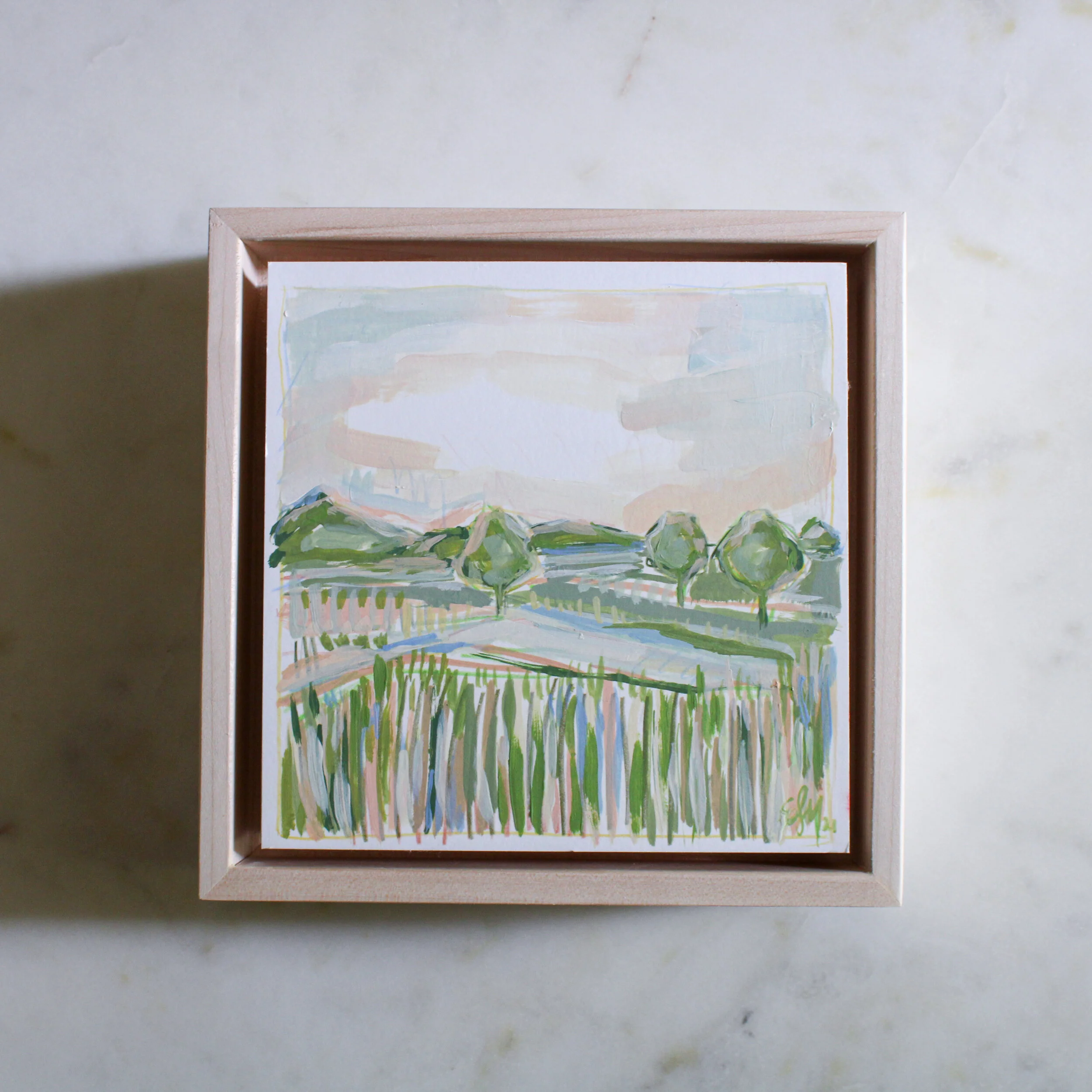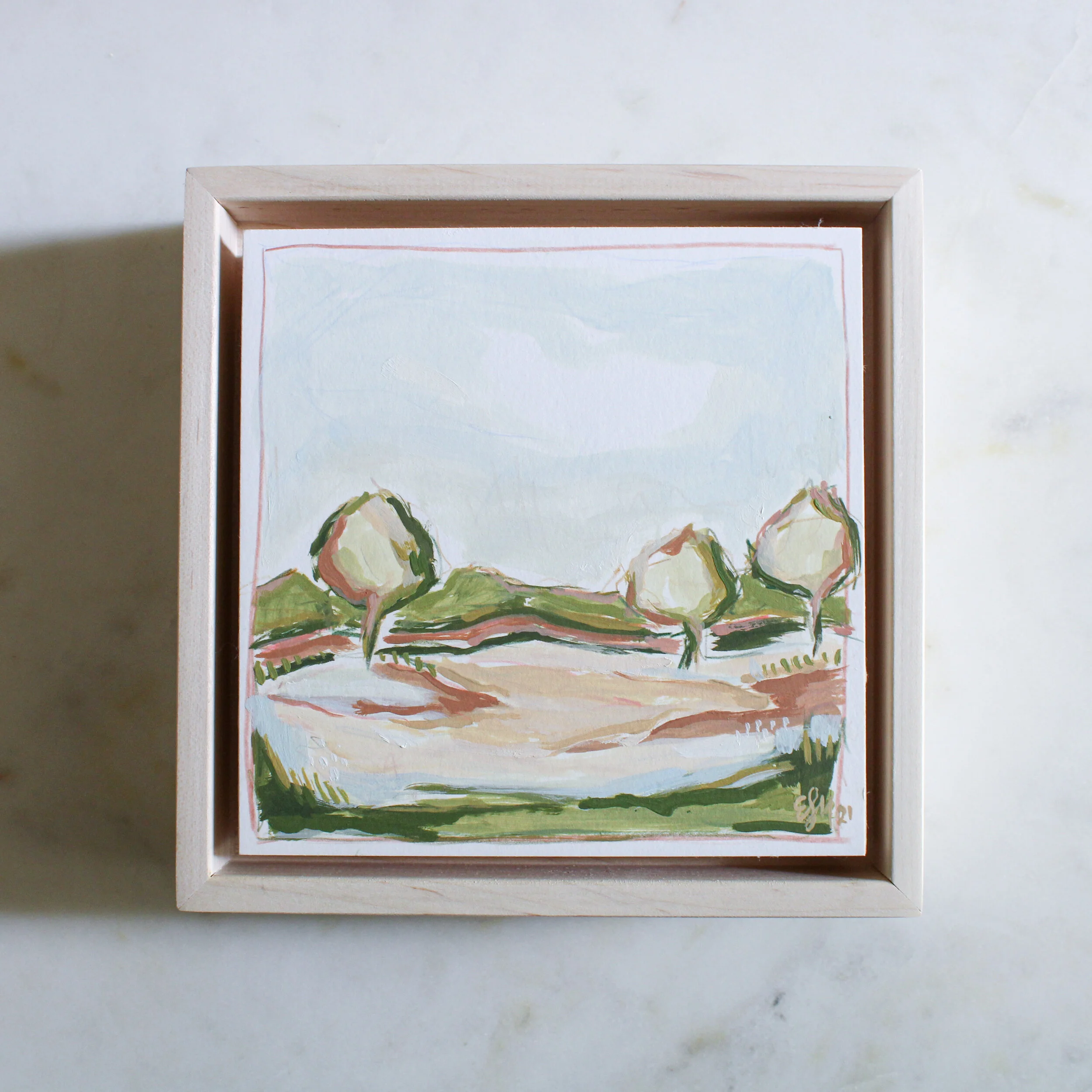 Sky Meets The Land, 6x6" | oil and colored pencil on paper, framed (Copy)