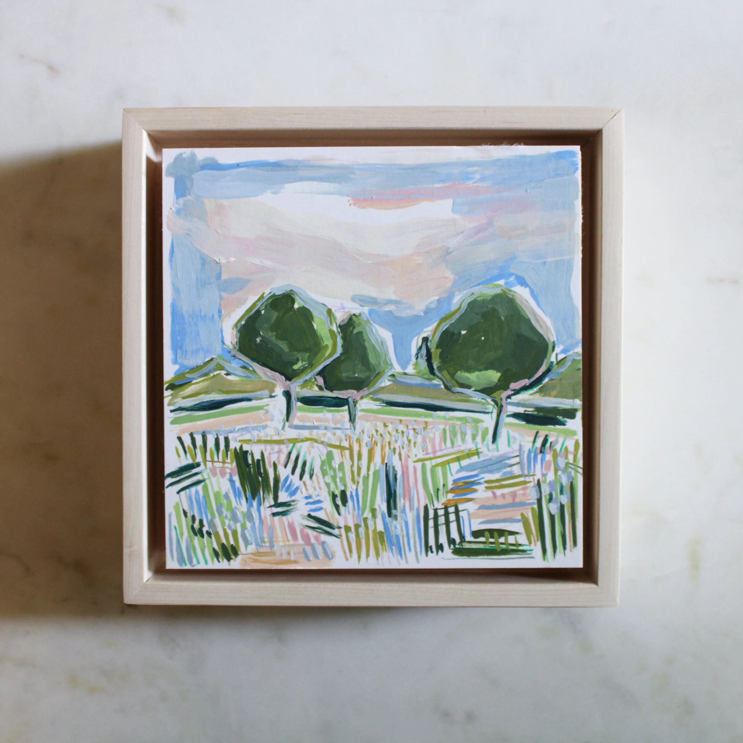 Festive Fields, 6x6" | Oil and colored pencil on paper, framed (Copy)